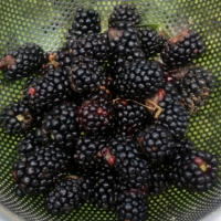 【2013.6.24】 畑庭の様子 庭のブラックベリーが熟し始めました。去年より少し早いみたいです。初収穫は大粒のものでボウルに一杯、約500g採れました。 ブラックベリーは種が多く、甘みもさほど強くないので生食よりも加工が美味しいと果物です。砂糖でさっと煮て、種を超してシロップ液にしたものでジュースを作ったり、ジャムにしたりします。砂糖は上白糖を使わずに、北海道の甜菜糖を使ったものでジャムをつくる予定です。マクロビ仕様のジャムは、オーガニックカフェやイベントなどで販売します。ジャムができましたら、また野菜便りでお知らせいたします。ラズベリーは思ったより収穫が少なかったので、今年のジャムは少ないですが、ブラックベリーは沢山収穫できそうなので今からとても楽しみです。(オクサマ) |
