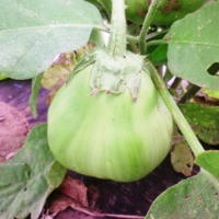【2013.7.27】 梅雨明け後に最初から猛暑がやってきたので、それ以降がやけに涼しく感じます。都内ではある程度夕立があったりするようですが、この近辺は梅雨明け以降ほとんど雨がありません。今週は少しまとまった雨が降りそうなので人参の種まきをするチャンスです。この時期に畑に直接種まきをする野菜は、天気予報とにらめっこをしながら播くタイミングを計るか、人為的に水遣りをして播くか非常に悩ましいです。 そんな中、畑ではかぼちゃ類がぐんぐん大きくなってきました。写真は「ロロン」と呼ばれる品種でとても甘いです。一般的なかぼちゃの収穫タイミングは成り口(写真の赤丸部分)で見極めます。この部分が枯れてきたら採り時です。なので写真のものはまだしばらく収穫までおあずけです。収穫したらしばらく風通しのいい場所で保管して熟成させると実のでんぷん質が糖分に変わって甘さを増します。皆さまのキッチン到着するのは、もう少し先になります。もうしばらくお待ちください。 |