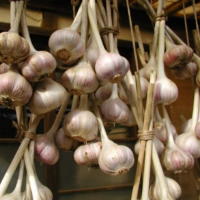 【2013.7.9】 梅雨が明けてしまいました。例年より2週間近く早いそうですね。他の地域は判りませんがこの辺りは「カラ梅雨」の印象が否めません。正直なところもう少し降ってくれないと困ります。 最近は後半にドカッと降って梅雨明けのパターンでしたが、今年はそれも無かったですね。それとも来週あたりにまたドカッと降って「実はまだ明けていませんでした」というオチだったりして。 今年はニンニクがうまくできました。「今年は」と言ってもまだ2回目ですが。昨年よりは丸々と太った玉のものが多かったです。収穫当初は生ニンニクでお出ししていましたが全部掘り上げてしまったので、軒下に吊るして現在乾燥処理中です。乾燥処理を施してもおそらく9〜10月くらいまでが限度だと思いますのでその間にセットにも入れようと思っています。8月からは追加注文も受け付けますのでご希望の方はお申し付けください |