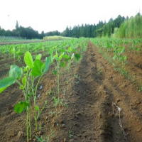 【2013.8.24】 大豆が順調に生育しています。品種は千葉県の地大豆の一つで「小糸大豆」といいます。大豆は毎年味噌を作る他に炒り豆にしてご飯に炊きこんだり、その炒り豆を粉にしてきな粉として味わったりしています。大豆はもちろん炒り豆やきな粉も野菜セットと同梱で販売する予定です。