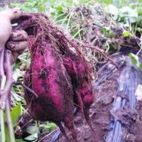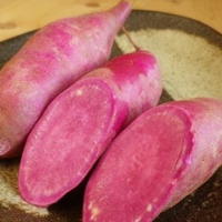 今週のお野菜で紫いも(パープルスイート)が入りました。甘味の少なかった従来の紫いもに比べて十分な甘さを持っているので普通のさつまいもと同じように蒸かしたり焼いたりしてお召し上がりいただけます。少し赤みを帯びた紫色はたっぷりのアントシアニンを含んでいます。我が家には石油ストーブがあるので小さすぎて出荷できなかったものをストーブの上において焼いもにしたりしています。他にもサイコロ大に切ったものを酒と塩で炊き込みご飯にしても美味しいです。。 |