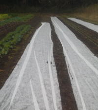 【2012.12.1】 12月になりました。今年も残すところあと1か月です。やはり今冬は暖冬予報から一転して例年通りの普通に寒い冬になるようです。 佐倉では今日の昼間にヒョウが降りました。室内でのストーブはすでに必需品となり、鍋で小豆を炊くのも楽しみのひとつです。 さて、畑の様子です。ある程度大きくなった野菜は寒さに耐えられますが、まだまだ小さいものは何回も強い霜にあたると枯れてしまいます。それを防ぐために、覆いをかけてあげます。薄い不織布を写真のようにべたっと掛けてあげるだけですが(その名も「べた掛け」といいます)、これをするかしないかで随分とその後の生育が違うのです。 |