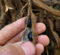【2012.12.8】 「収穫の秋」などと言いますが、もうり農園では今が収穫ラッシュです。11月のさつまいも・かぼちゃに始まって今は里芋、じゃがいも、大豆、小豆など収穫しなくちゃいけないものが目白押しです。どんどん畑がさみしくなっていきます。今年は初めて「黒大豆」を作りました。種豆はもちろん「丹波黒大豆」!。本場京都の農家さんに種を分けてもらいました。「丹波」という種類の黒豆です。普通の大豆より一回りも二回りも大きい丸々とした大豆です。もうすぐお正月です。ご家庭で炊いた黒豆でお正月を迎えませんか?野菜セットには入りませんので別注文にてお届けいたします。 |