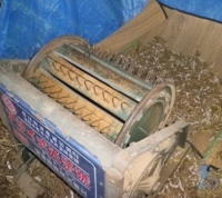 【2012.12.15】 収穫はまだまだ続きます。今週は大豆を収穫しました。 ちょっと遅れ気味でしたので莢から大豆がはじけ始めていました。 こんもりと軽トラ3杯分はありました。 少量だとこの山を足で踏みつけたり棒で叩いたりして 豆を取り出しのですがさすがにちょっと無理。 そこでこんな年代物の機械が活躍します。 足踏みで回転するドラム部分についた櫛歯に莢を当てて豆を飛ばします。 脱穀だけで丸一日近くかかりました。 まだ莢や葉っぱなどのごみと豆が混ざっているので選り分けた後、 虫食いの豆や割れた豆などを選別したりなどまだまだ作業は続きます。 するとまた年明けから楽しみの味噌作りです。 |